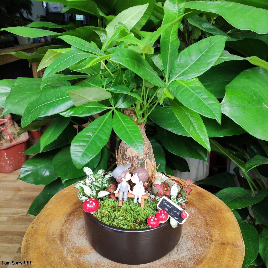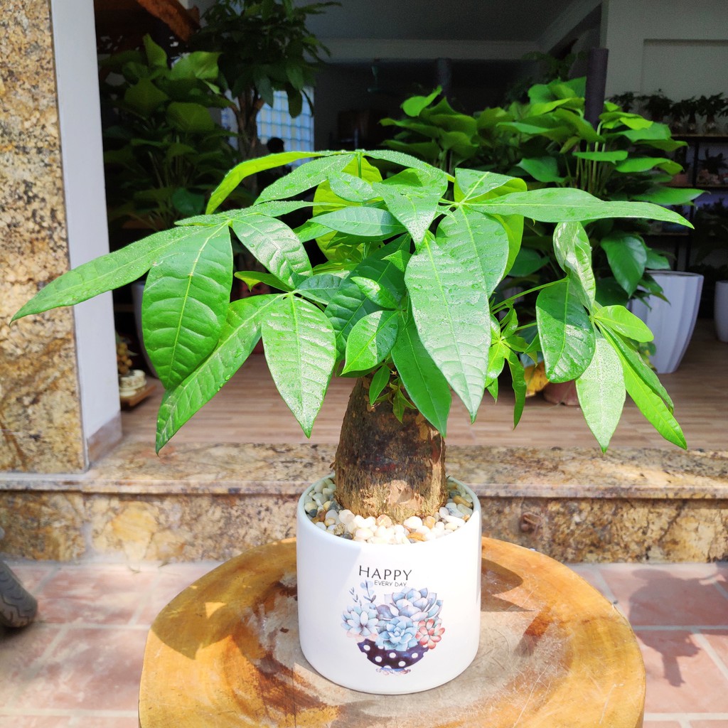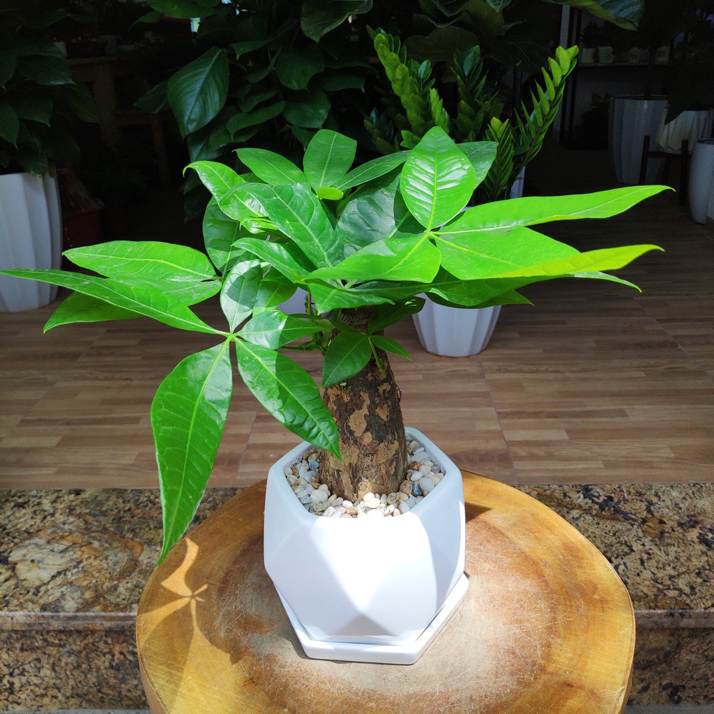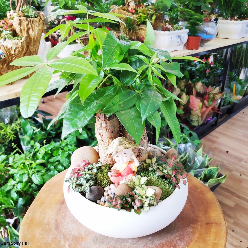 Shop tặng kèm đất và đá trắng rải trang trí khi mua kèm chậu sứ nha.