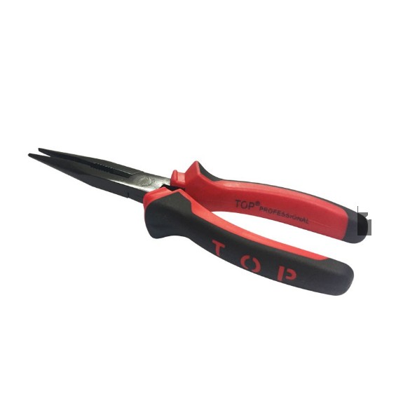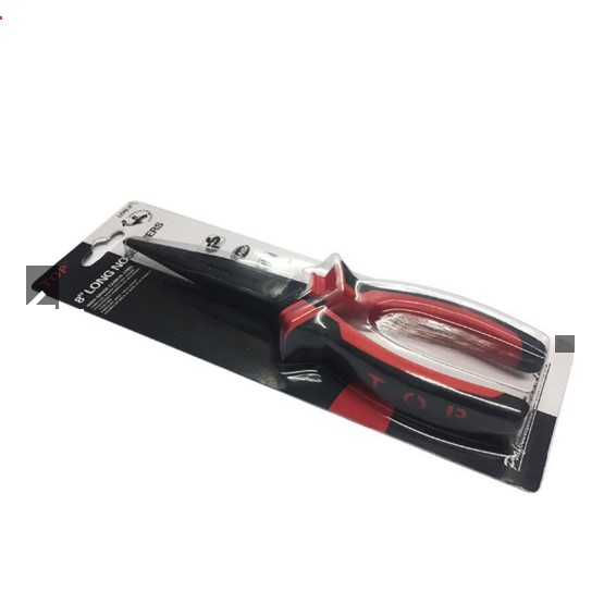 Kìm Nhọn cán Đỏ Đen 8" (200mm) hiệu TOP, được sản xuất tại Đài Loan. Với thiết kế mũi kìm nhọn và dài, sản phẩm này phù hợp sử dụng tại các vị trí nhỏ hẹp hoặc nằm sâu bên trong.