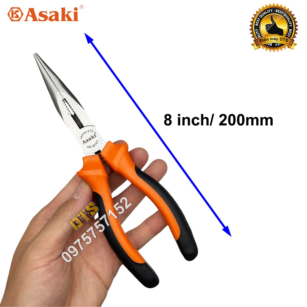 Nhà cửa & Đời sống > Dụng cụ & Thiết bị tiện ích > Dụng cụ > Kìm || Kìm nhọn 8 inch kiểu Đức Asaki, kềm mỏ nhọn dài đa năng A+cut Tech thép CR-V siêu cứng chống gỉ sét tay cầm bọc cao suCòn hàng