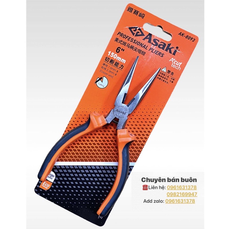 kìm nhọn Asaki cao cấp cỡ 6 inch 6' 150mm- Kềm nhọn Asaki 150mm