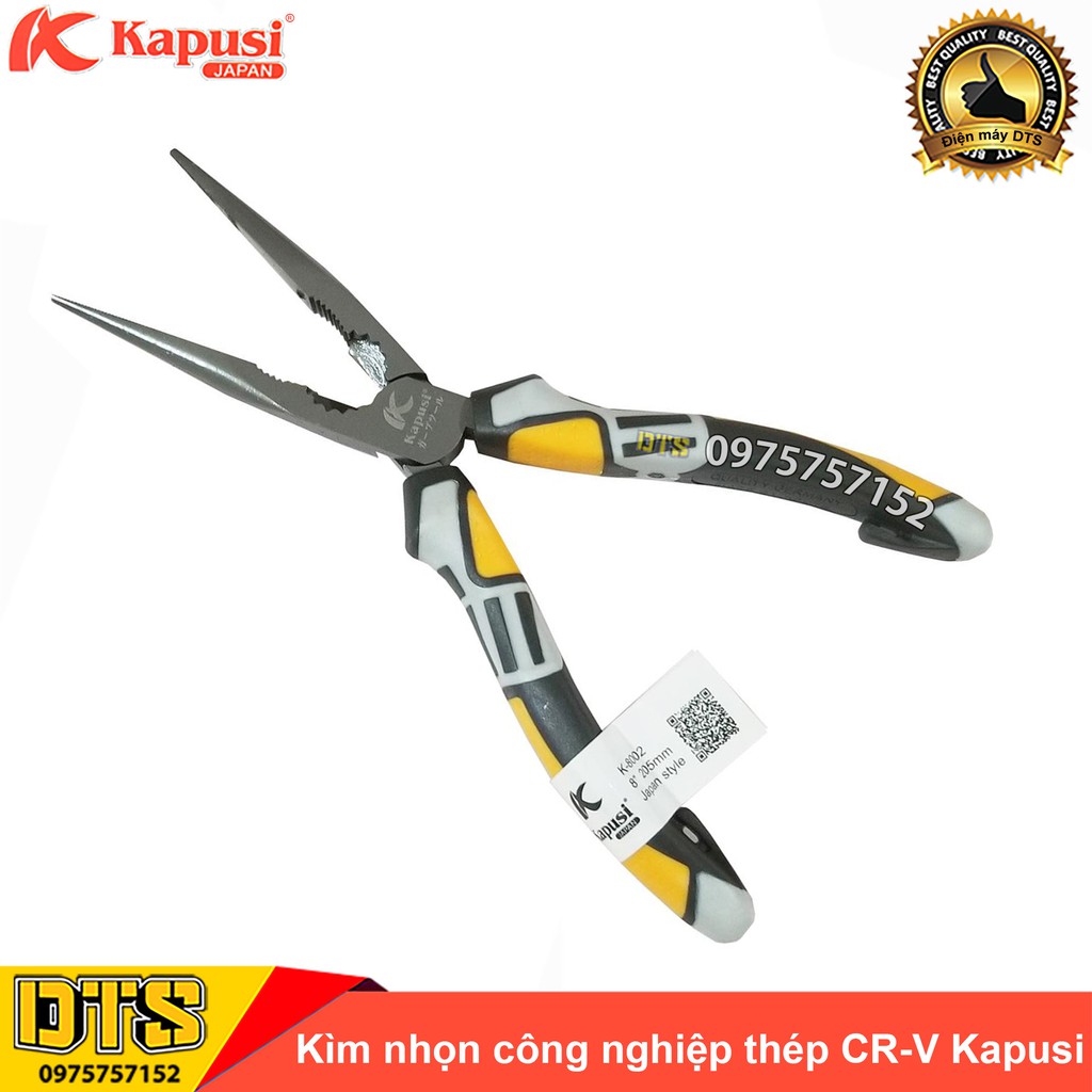 Kìm nhọn công nghiệp Kapusi JAPAN thép cao cấp CR-V 8 inch (205mm), thiết kế tiên tiến tiết kiệm 30% lực bấm
