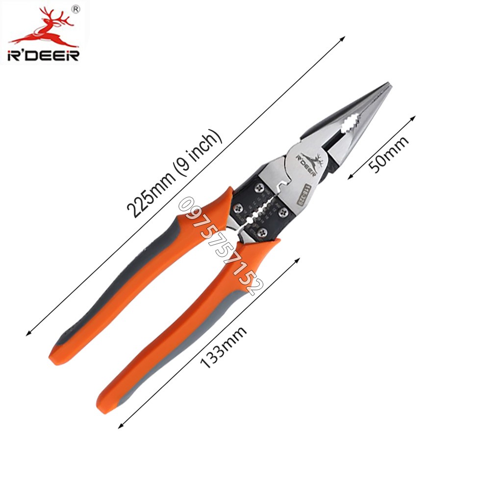 Kìm nhọn đa năng cao cấp 4 trong 1 R'DEER 118-139 9inch/225mm (Kẹp-Cắt-Uốn-Tuốt dây)