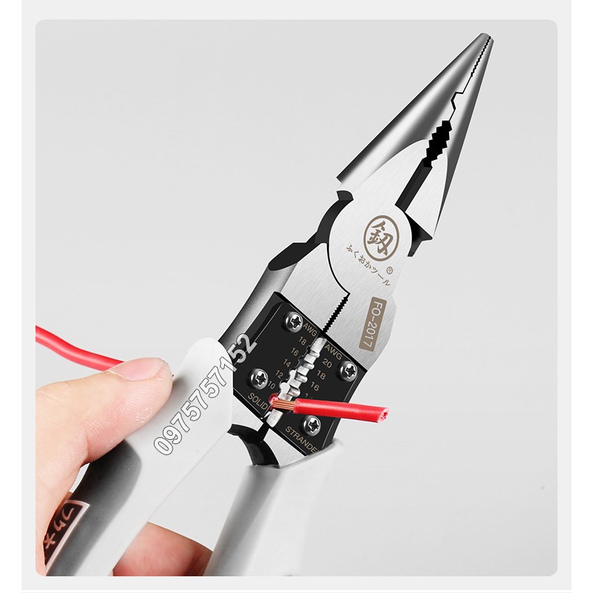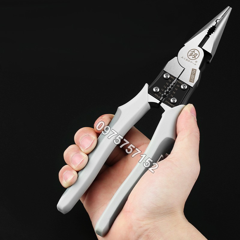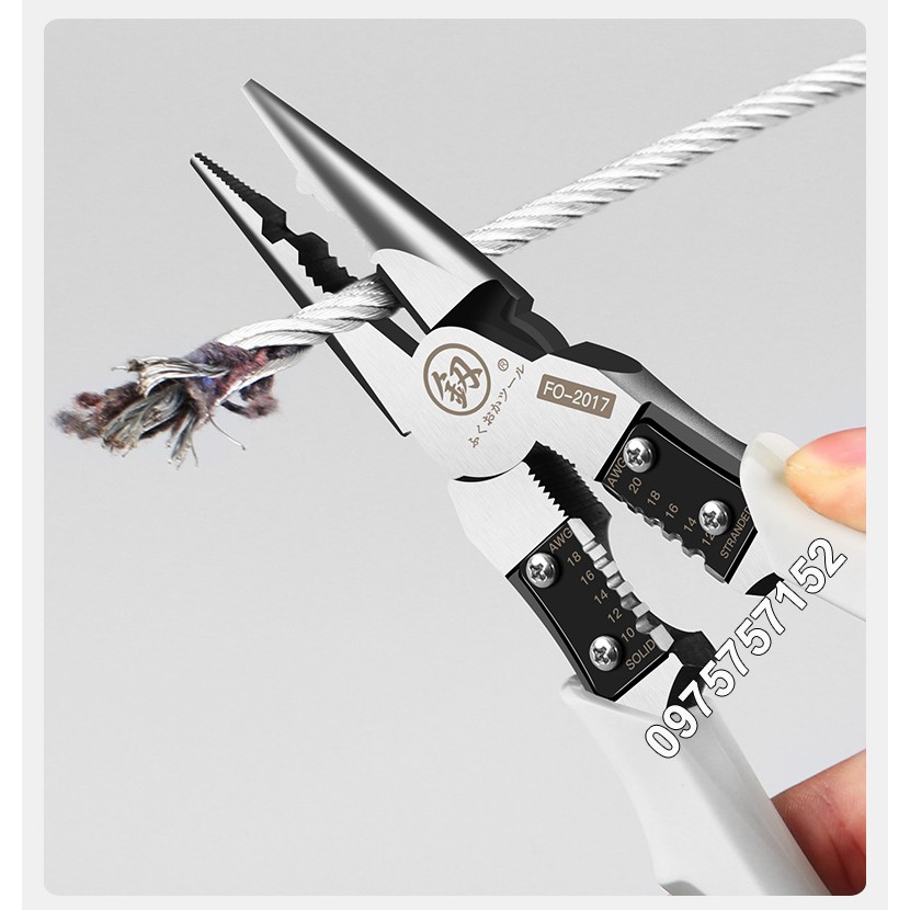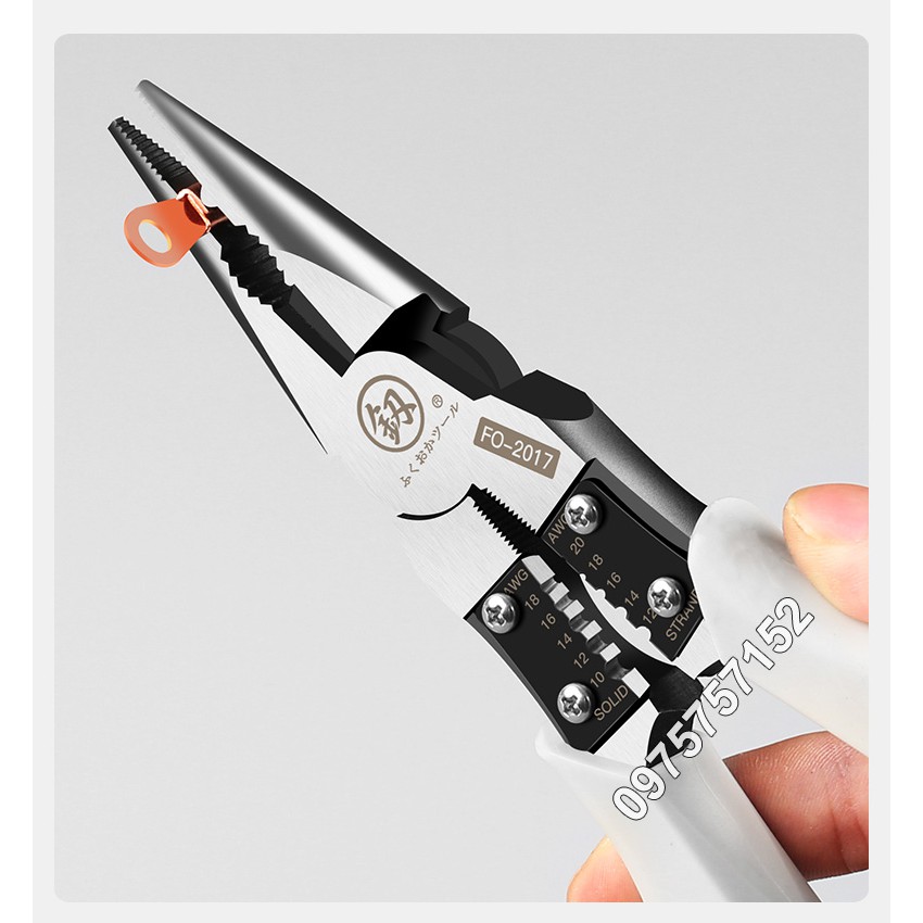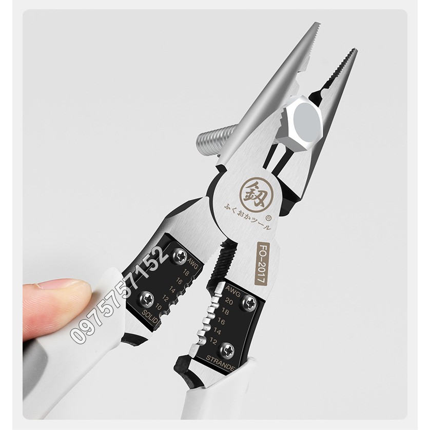 Nhà cửa & Đời sống > Dụng cụ & Thiết bị tiện ích > Dụng cụ > Kìm || Kìm nhọn đa năng cao cấp Nhật Bản 5 trong 1 FUKOUKA FO-2017 8inch/220mm (Kẹp-Cắt-Uốn-Cuộn-Tuốt dây)Còn hàng