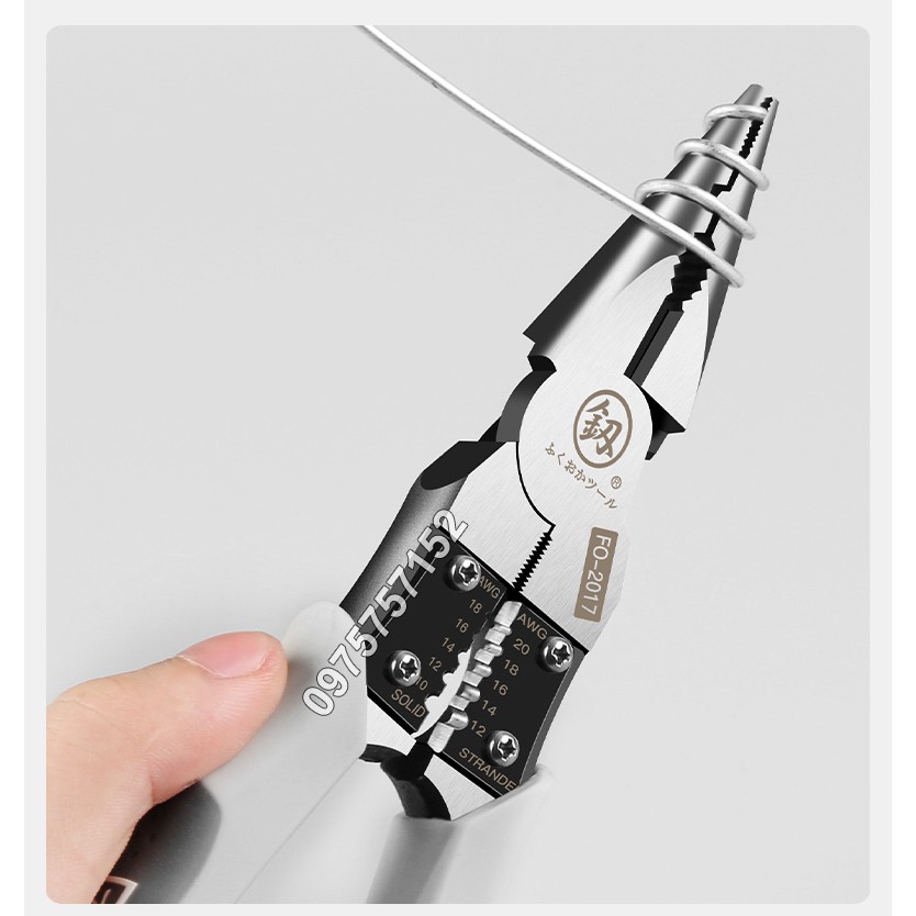 Kìm nhọn đa năng cao cấp Nhật Bản 5 trong 1 FUKOUKA FO-2017 8inch/220mm (Kẹp-Cắt-Uốn-Cuộn-Tuốt dây)
