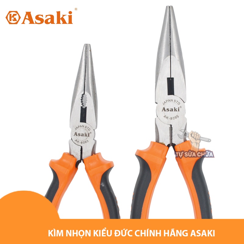 Nhà cửa & Đời sống > Dụng cụ & Thiết bị tiện ích > Dụng cụ > Kìm || Kìm nhọn kiểu Đức Asaki đa năng thép CR-V siêu cứng chống gỉ sét tay cầm bọc cao suCòn hàng