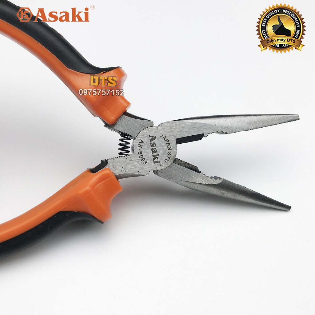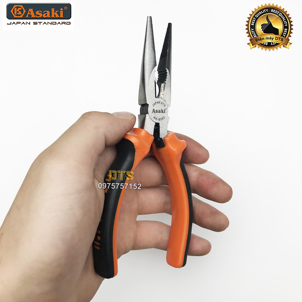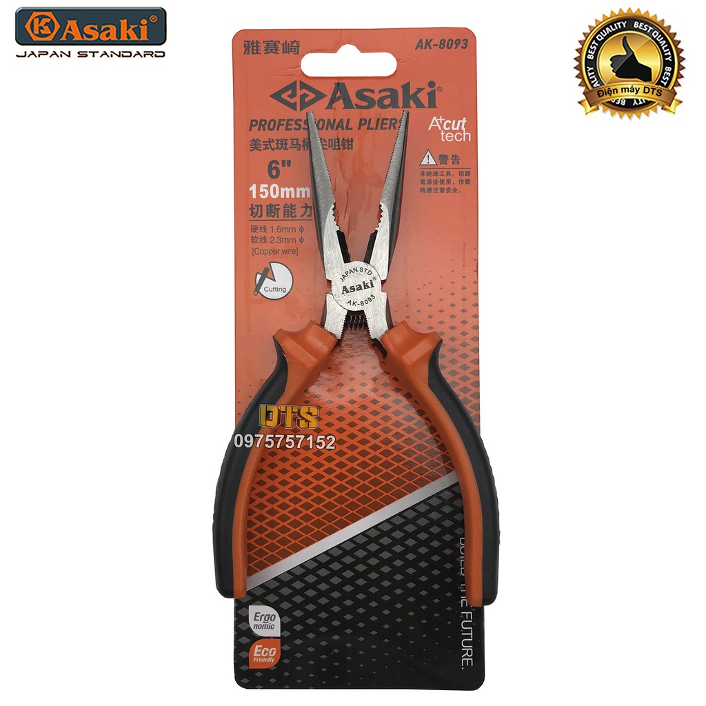 Nhà cửa & Đời sống > Dụng cụ & Thiết bị tiện ích > Dụng cụ > Kìm || Kìm nhọn kiểu Mỹ Asaki A+cut Tech 6 inch/ 150mm, thép High Carbon độ cứng caoCòn hàng