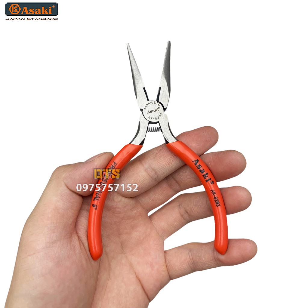 Kìm nhọn mini 5 inch Asaki JAPAN STD 125mm, thép CR-V độ cứng cao, lò xo tích hợp tiết kiệm sức lực (Kềm nhọn mini)