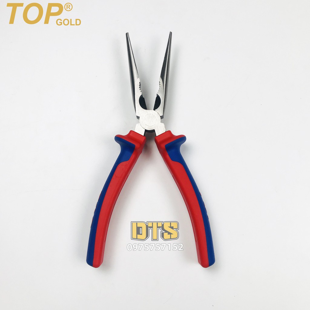 - Kìm mũi nhọn thương hiệu TOP GOLD là sản phẩm rất tiện dụng vì mũi kìm có thể sử dụng được trong các vị trí nhỏ hẹp. Ngoài công dụng kẹp, giữ và vặn các chi tiết bằng kim loại thì sản phẩm này có nhiều tính năng như : cắt được dây cáp điện, cáp quang, đinh, kẽm, thép,…