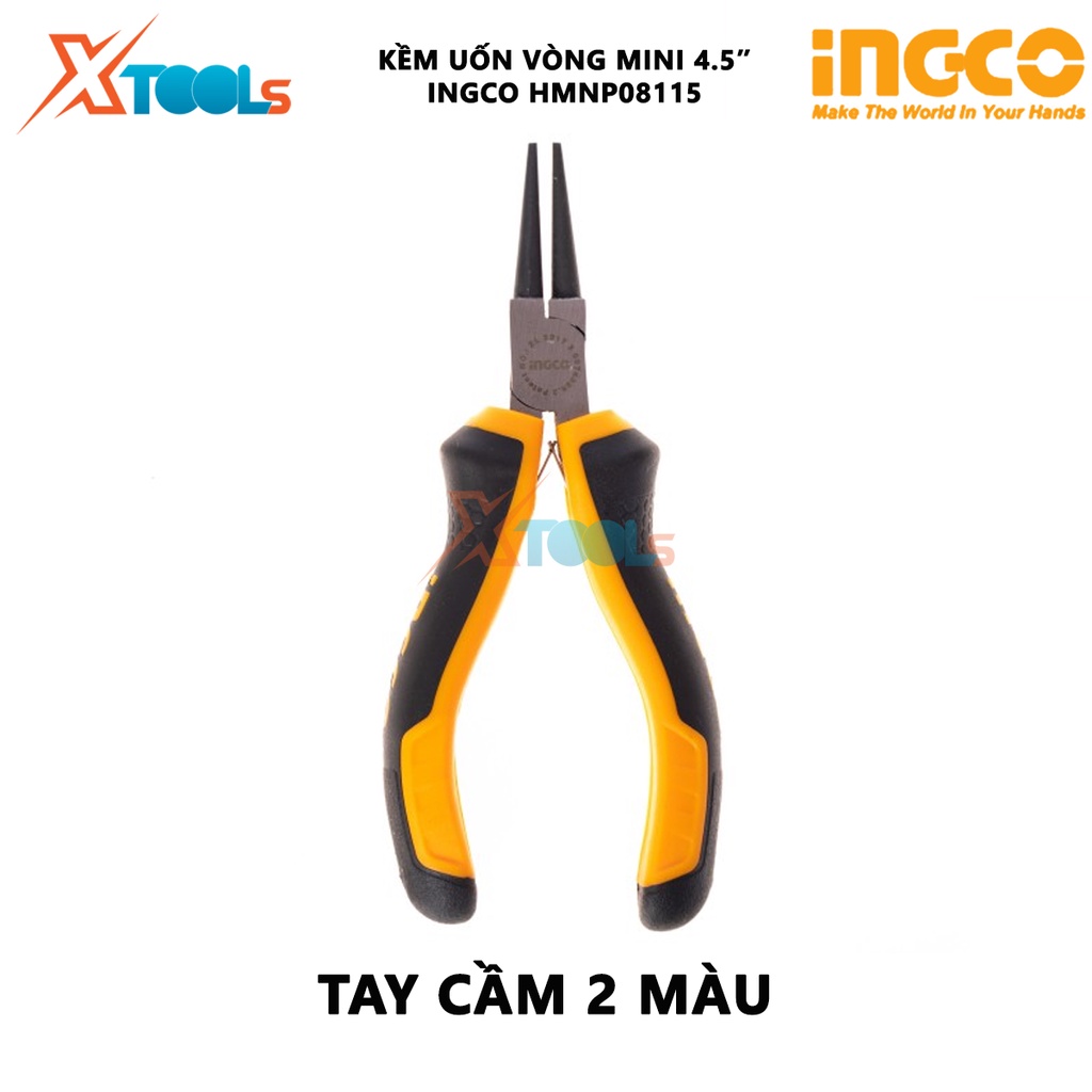 Kìm nhọn uốn vòng mini INGCO HMNP08115 | kềm uốn vòng Kích thước 4.5"/ 115mm Đầu kềm được đánh bóng và chống gỉ kẹp, gi