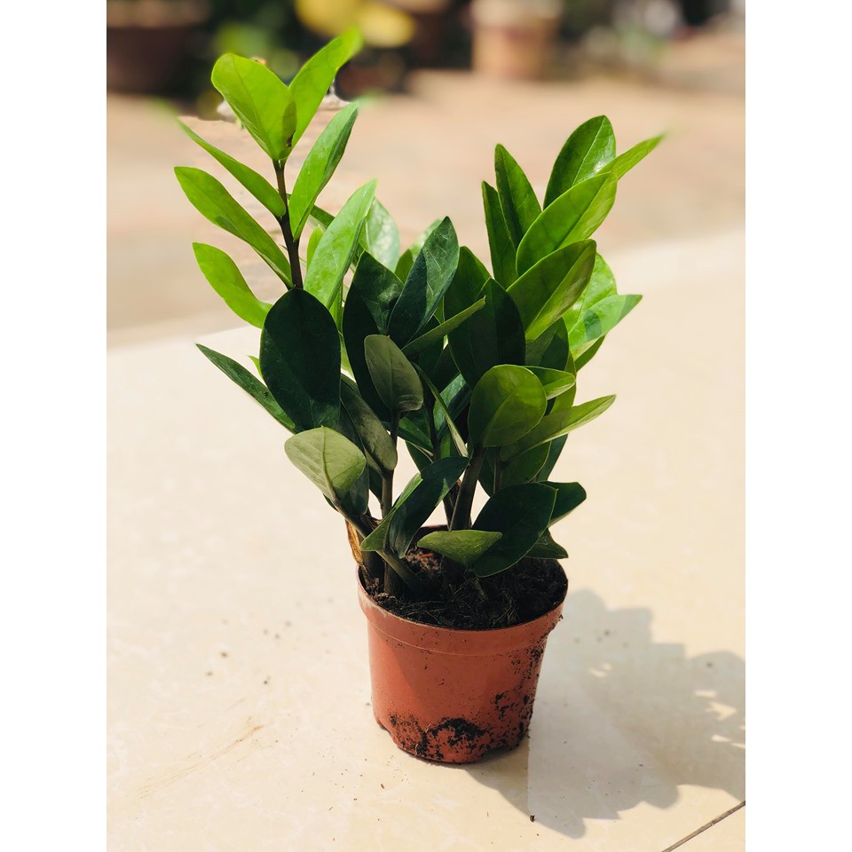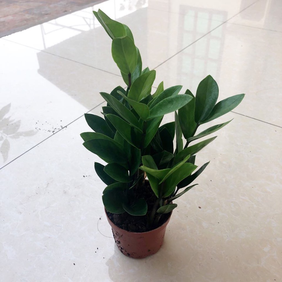 Mổ tả sản phẩm: cây cao khảng 20 cm rộng 15 cmCây kim tiền có tên khoa học là Zamioculcas zamifolia, hay người ta còn gọi là cây kim phát tài, thuộc cây cảnh họ thiên nam tinh, là loại cây dễ chùm, sống lâu năm, xanh tốt. Thân cây to khỏe, mọng nước, phình to ở dưới gốc cây. Trên mặt đất cây không có thân chính mà mầm nảy mạnh và hình thành nhiều thân nhỏ. Cây kim tiền có lá kép dạng to, cuống lá ngắn, phiến lá dầy màu xanh thẫm, sáng bóng, rất đẹp, một cây thường có tuổi thọ từ 2 -3 năm, tuy nhiên trong khoảng thời gian đó nếu được chăm sóc tốt thì cây sinh trưởng và phát triển ra rất nhiều cách nhánh, cây con. Chính vì đặc điểm phát triển mạnh và cây nhìn rất màu mỡ, nên người ta tin rằng những ai sở hữu loại cây này sẽ có được sự thịnh vượng, may mắn và tiền tài. Vì vậy mà cây kim tiền luôn là lựa chọn số một cho các phòng khách, phòng hội họp, văn phòng công sở, nhà hàng, khách sạn, hoặc dùng làm quà tặng trong những dịp mừng lễ, tết, thăng chức, khai trương….Ý NGHĨA VÀ PHONG THỦY CỦA CÂY KIM TIỀNQua tên gọi của nó thôi mọi người cũng có thể thấy được sự phú quý và giàu sang. Là loại cây cảnh mang lại may mắn hàng đầu về phong thủy. Ngoài ra nếu bạn đặt đúng cách và hướng thì cây còn có thể chiêu tài cho gia chủ.