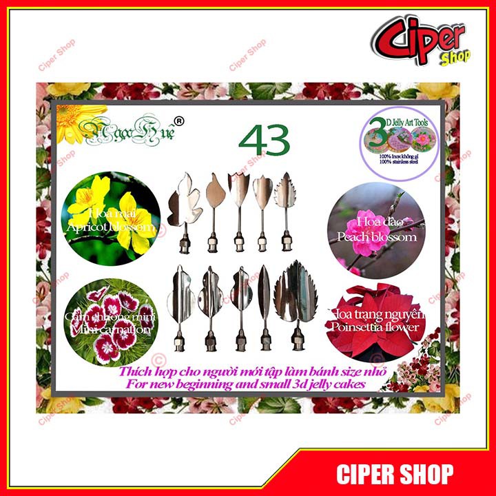 Giới thiệu Kim rau câu 3D Ngọc Huệ bộ 10 kim Mẫu 37 đến 45 - Kim làm thạch rau câu