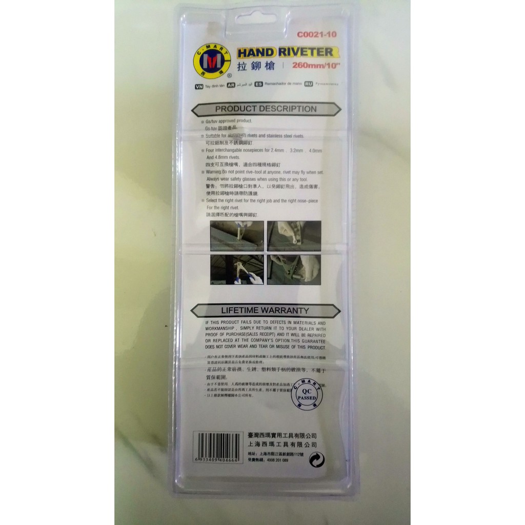 Kìm rút rive (đinh tán) 10"/250mm C0021-10Kìm rút rive (đinh tán) 10"/250mm cấu tạo bằng thép không gỉ có độ bền cao, hiệu quả rút rive cao.