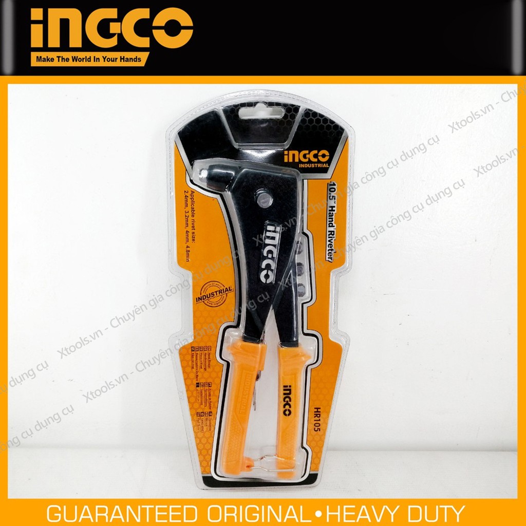 Kìm rút đinh tán chuyên dụng INGCO HR105 10", kềm rút rive trợ lực, tay cầm dài, cỡ đinh rút 2.4mm-4.8mm