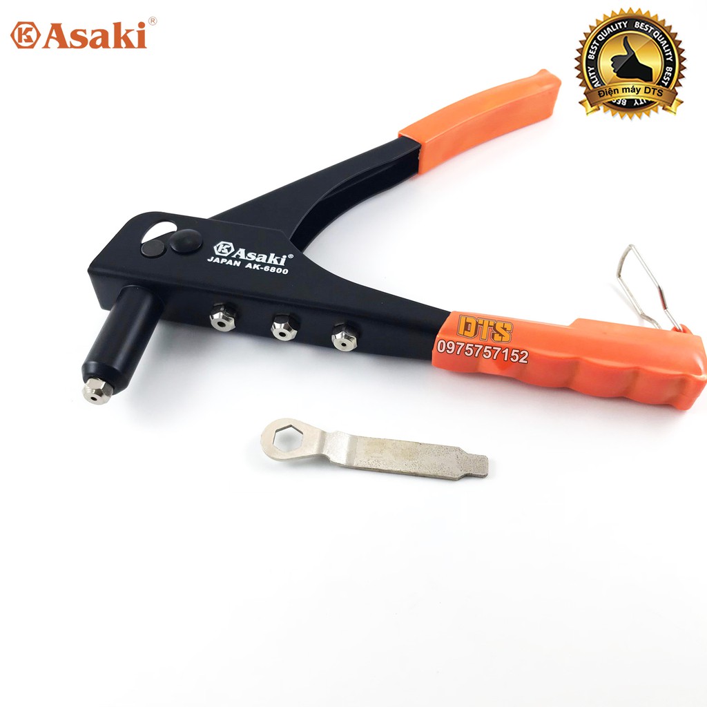 - Kìm rút tán đinh rive hiệu Asaki, thân kìm được chế tạo bằng kim loại, bộ nhíp rút đinh của kìm được chế tạo bằng thép