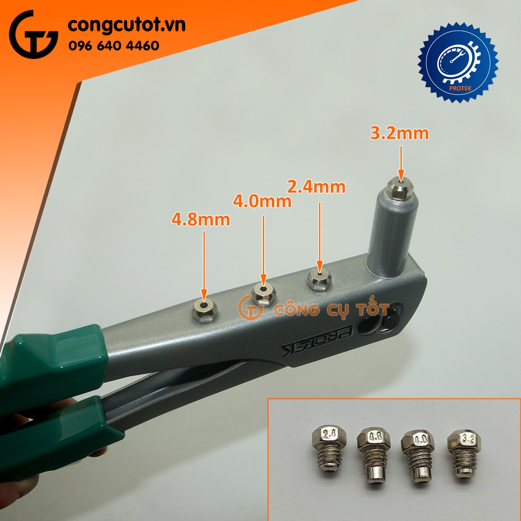 Kích cỡ đầu rút phổ biến: 2.4mm, 3.2mm, 4mm, 4.8mm.