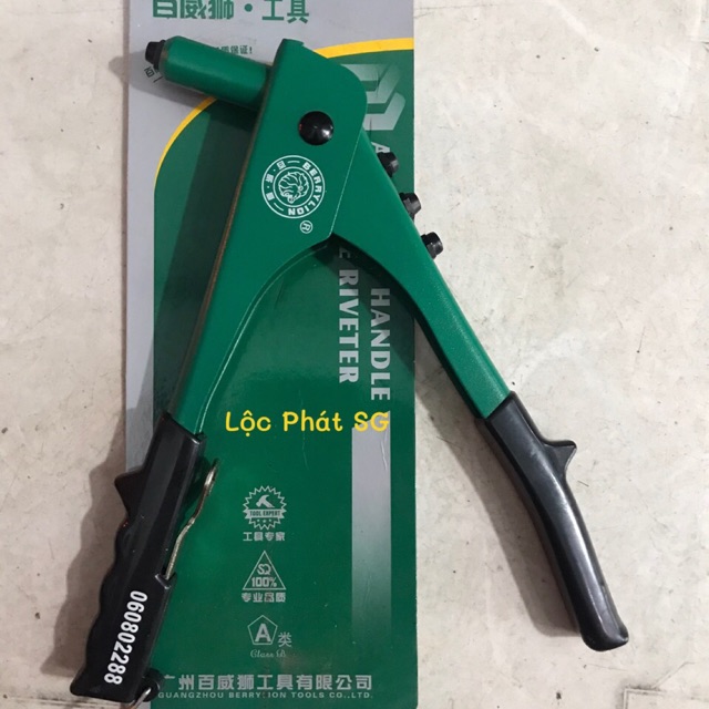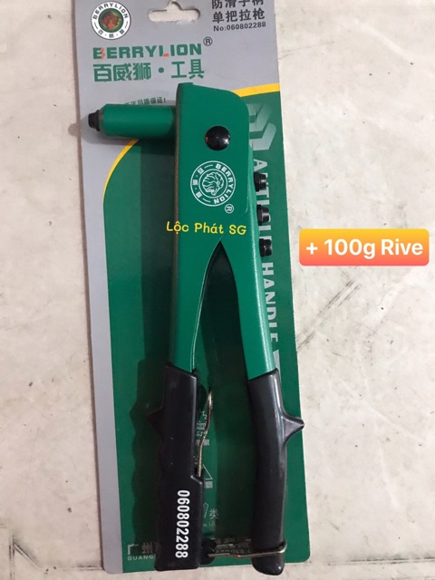 Kìm rút rive sư tử thân xanh, cán đen mạnh mẽ, chắn chắn.Sản phẩm gồm: 1 kìm Rive + 100gram đinh rive nhôm 3/4/5 li.