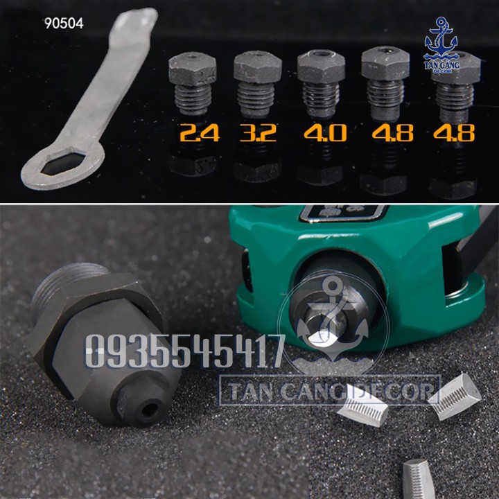 - Dụng cụ rút ri vê có thể rút đính tán các kích cỡ : 2.4 - 3.2 - 4.0 - 4.8 mm