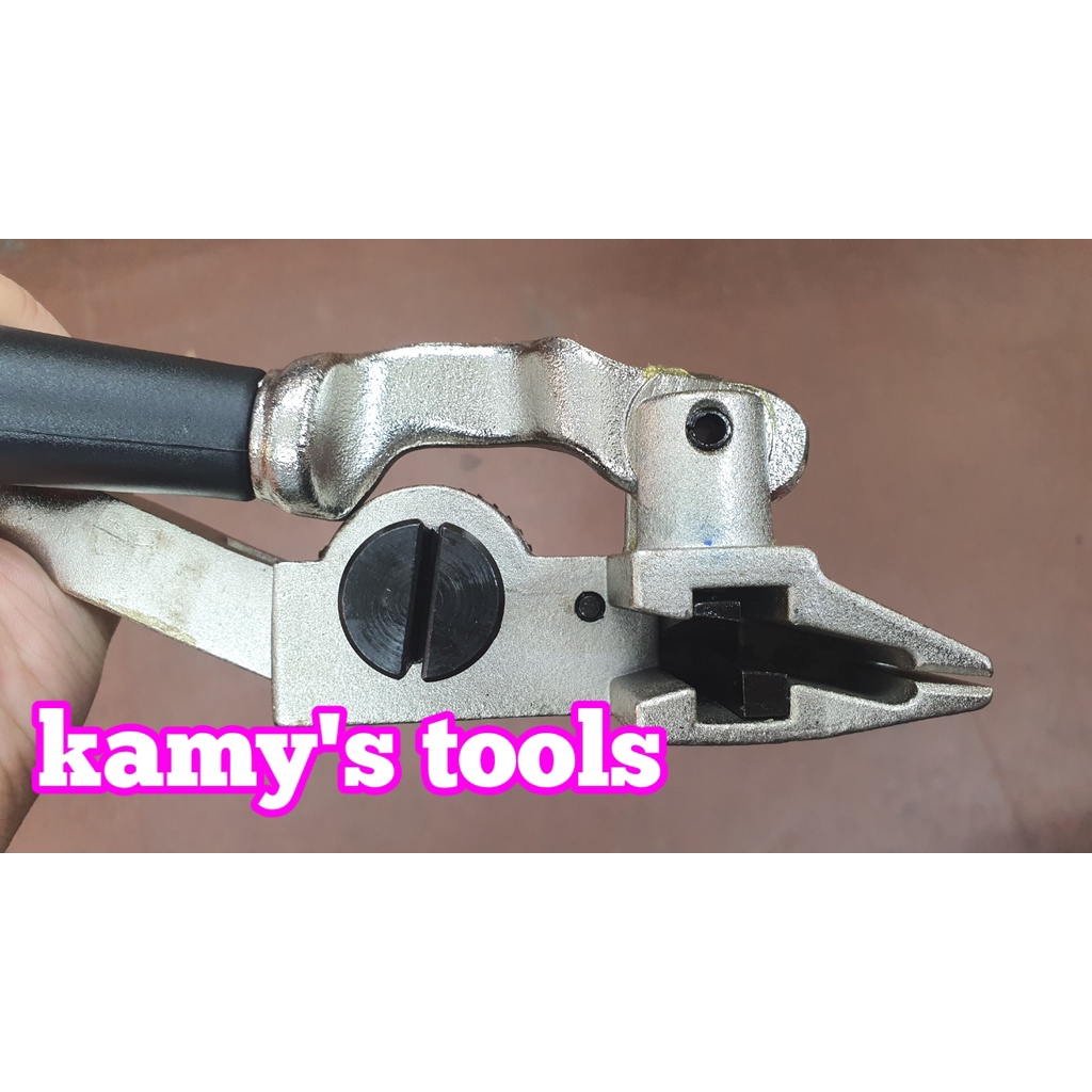 Kamy's tools chuyên phân phối các loại kìm siết đai inox, kiềm siết đai inox, kềm siết đai inox, là một trong những dụng cụ đóng đai sử dụng cho dây đai thép không gỉ rỉ đai inox thường kết hợp với khóa đai inox để tiến hành đóng đai hay cột chặt vật gì đó theo hình tròn như các đường ống dầu, các trụ điện trên cao để nâng đỡ hòm công tơ. Trong đó có kìm siết đai inox ybico s240 chữ nỗi đài loan hay còn được gọi là kìm siết đai inox ybico s240, dụng cụ siết đai inox ybico s240, kiềm siết đai inox ybico s240, kiềm siết đai inox s240, kềm siết đai inox ybico s240, kềm siết đai inox s240, s240, có thể sử dụng được tất cả các loại dây đai (thép không rỉ) có đường kính từ 3/8"-3/4" với độ dày là vào khoảng 0.5mm-0.76mm. Kìm siết đai inox ybico s240 chữ nỗi đài loan được sản xuất bằng chất liệu thép được tôi luyện qua nhiều quá trình giúp cho chất lượng thép trở nên rất cứng, đặt biệt là hai bộ phận cắt và búa đóng được thiết kế trên thân kìm siết đai inox ybico s240 chữ nỗi đài loan. Bộ phận dao cắt được thiết kế bên hông để cắt dây đai sau khi siết chặt rất là thuận lợi vì thế ta không cần phải mang theo một cây kìm cắt dây đai thép nữa. Ngoài ra bộ phận búa đóng được thiết kế ở đối diện với bộ phận dao cắt giúp cho kìm siết đai inox ybico s240 chữ nỗi đài loan thật tiện lợi khi ta không cần phải mang theo búa để đóng lên khóa đai inox khi chốt chặt. Trọng lượng của kìm siết đai inox ybico s240 chữ nỗi đài loan chỉ khoảng 2kg rất nhẹ để cầm nắm và thao tác trên cao mà không mỏi tay và phần cán có phủ một lớp cao su nhựa nhám giúp cho việc cầm nắm khong bị rơi rớt. Kìm siết đai inox ybico s240 chữ nỗi đài loan hoạt động nhờ vào có chế bánh cóc bánh nhông để làm căng dây đai inox. Cơ chế này giúp ta có thể giảm bớt rất nhiều sức lao động khi phải thao tác trong một thời gian dài. Hãy liên hệ với kamy's tools để được biết thêm thông tin chi tiết sản phẩm kìm siết đai inox ybico s240 chữ nỗi đài loan.Giá MODEX