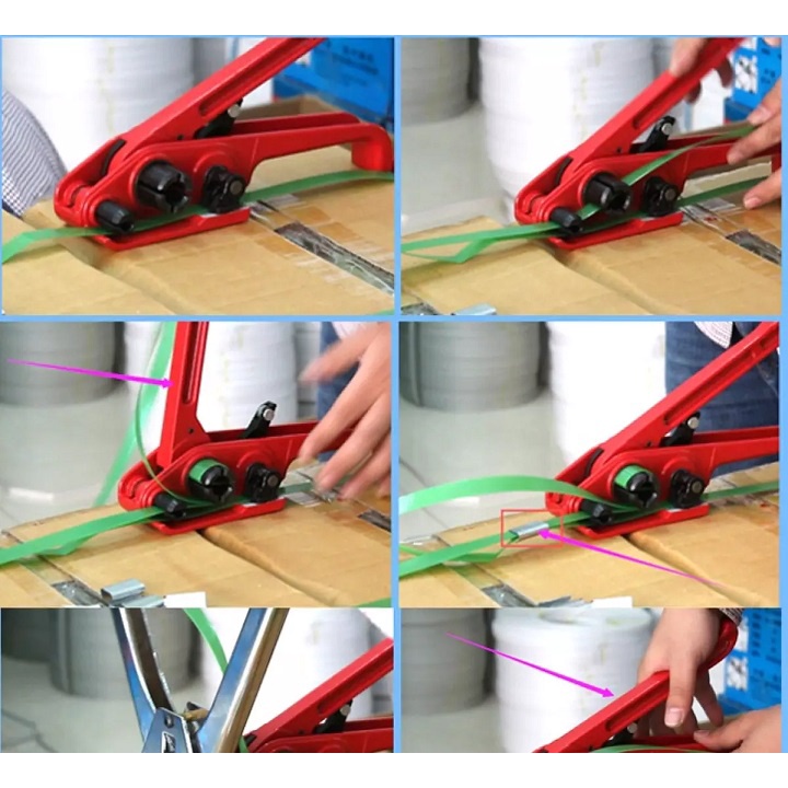 Kìm siết đai nhựa -Dụng cụ đóng đai kẹp bọ |Phương thức đai niềng: bằng tay và kẹp bọ.