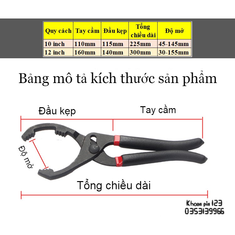 Giới thiệu Kìm tháo đầu lọc dầu chuyên dụng 10 inch, 12 inch độ mở 30-155mm