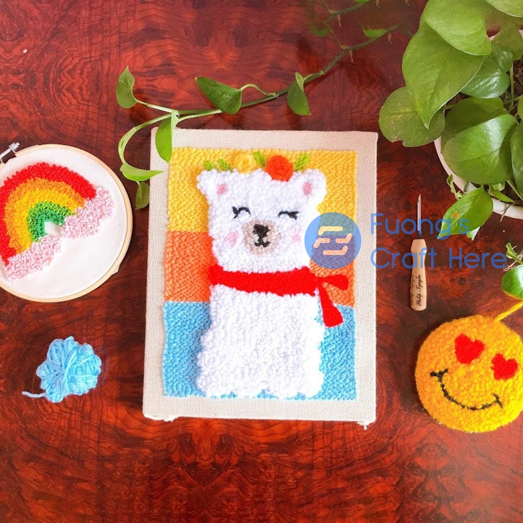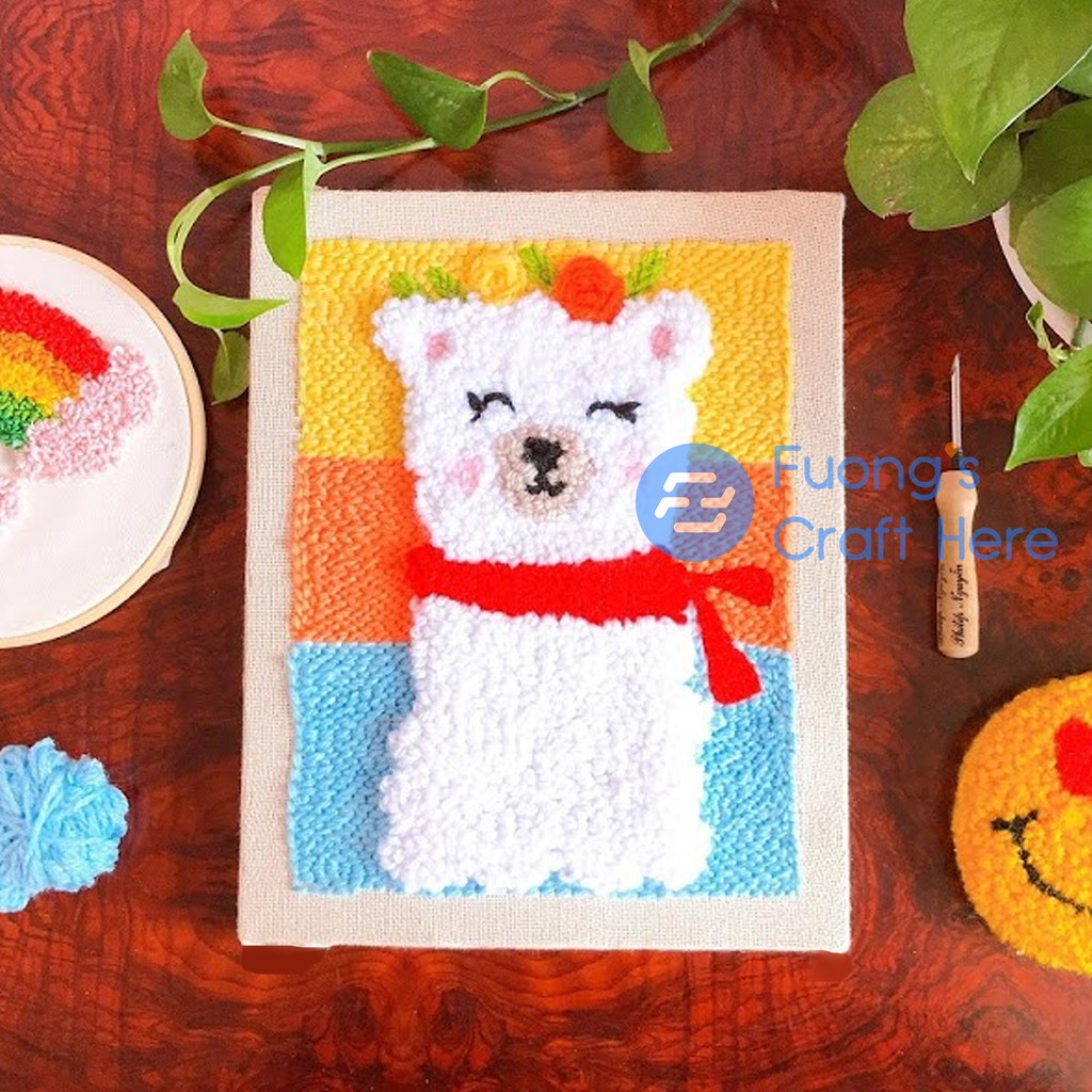 Kim Thêu Nổi Thêu Xù Punch Needle Set Gấu Trắng Alpaca Dùng Len Đan Móc Dành Cho Người Mới Bắt Đầu