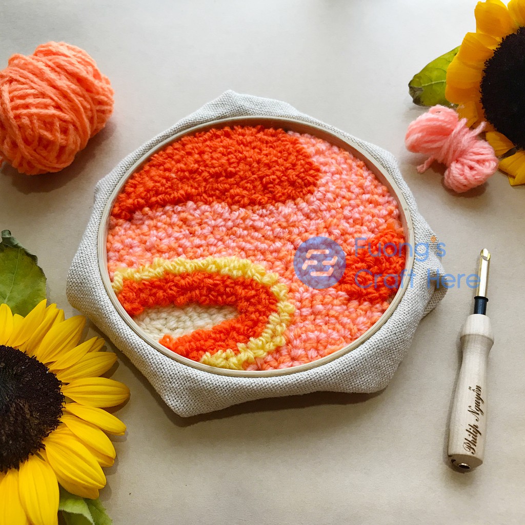 - Kim Thêu Nổi Thêu Xù Punch Needle Đơn hoặc Sợi Đôi (2mm/sợi) sử dụng với nhiều chất liệu vải như: bao bố, mộc thưa, vải lưới, cotton...miễn sao mắt vải giữ được sợi len của bạn khi đưa kim lên (tránh sử dụng trên vải thun, vải có độ co giãn lớn). Bạn có thể tìm thấy loại vải thêu nổi trong shop của mình.