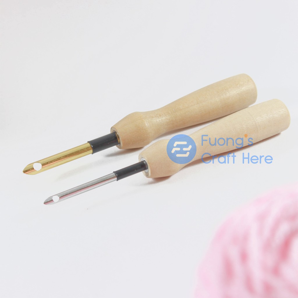 Kim Thêu Nổi Thêu Xù Punch Needle Dùng Len Đan Móc Sợi Đơn hoặc Sợi Đôi (2mm/sợi) Chuôi Gỗ Dành Cho Người Mới Bắt Đầu