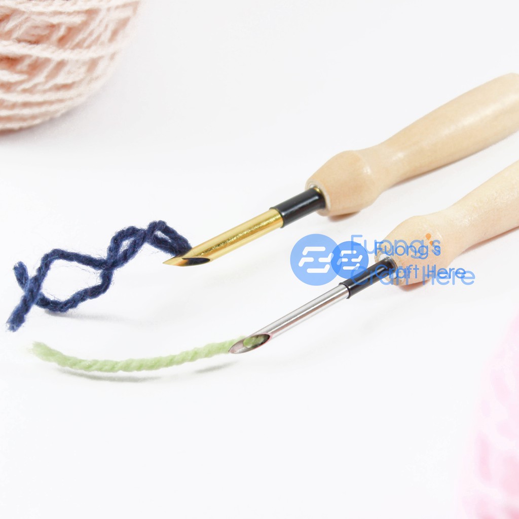 Giới thiệu Kim Thêu Nổi Thêu Xù Punch Needle Dùng Len Đan Móc Sợi Đơn hoặc Sợi Đôi (2mm/sợi) Chuôi Gỗ Dành Cho Người Mới Bắt Đầu
