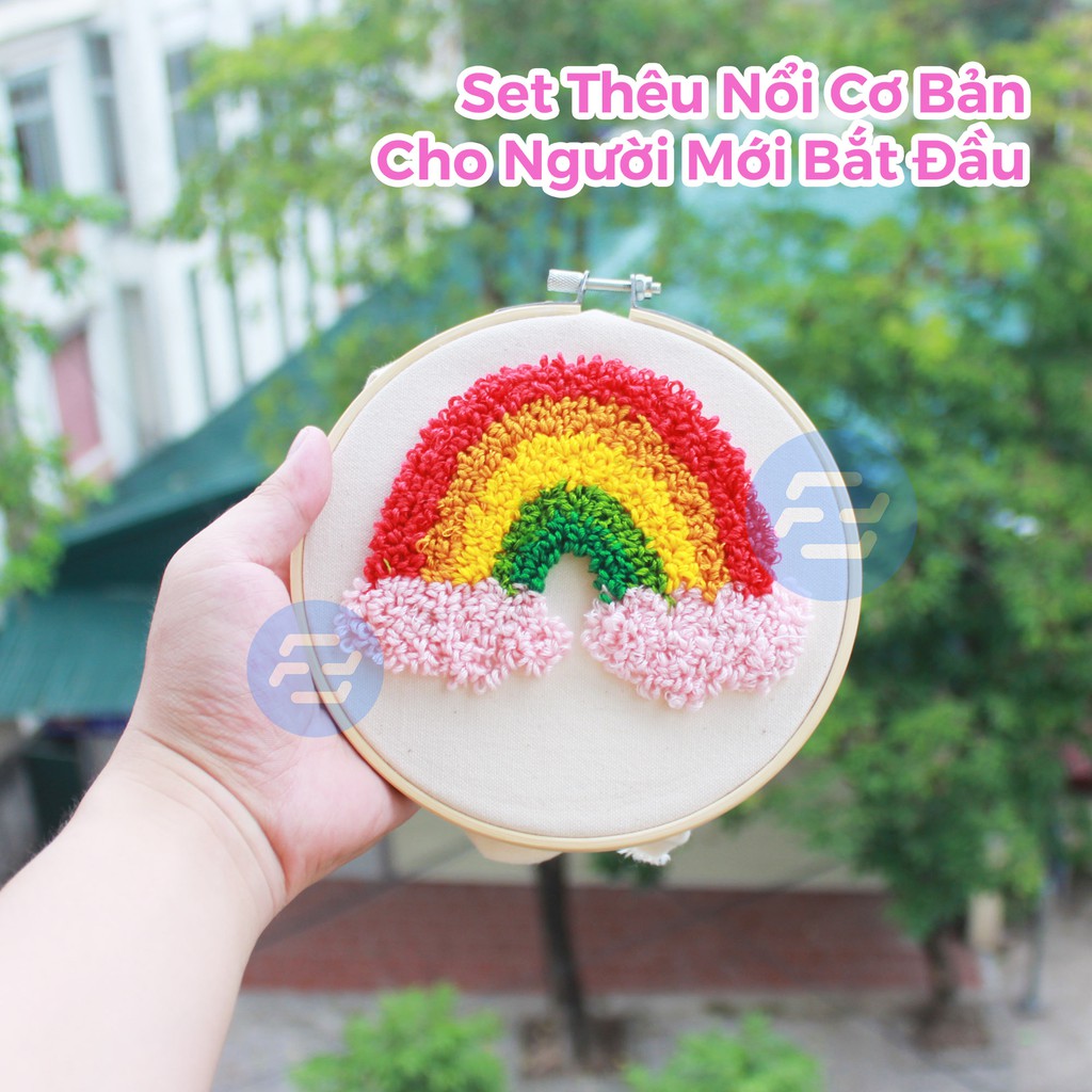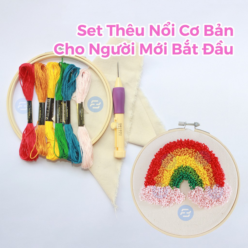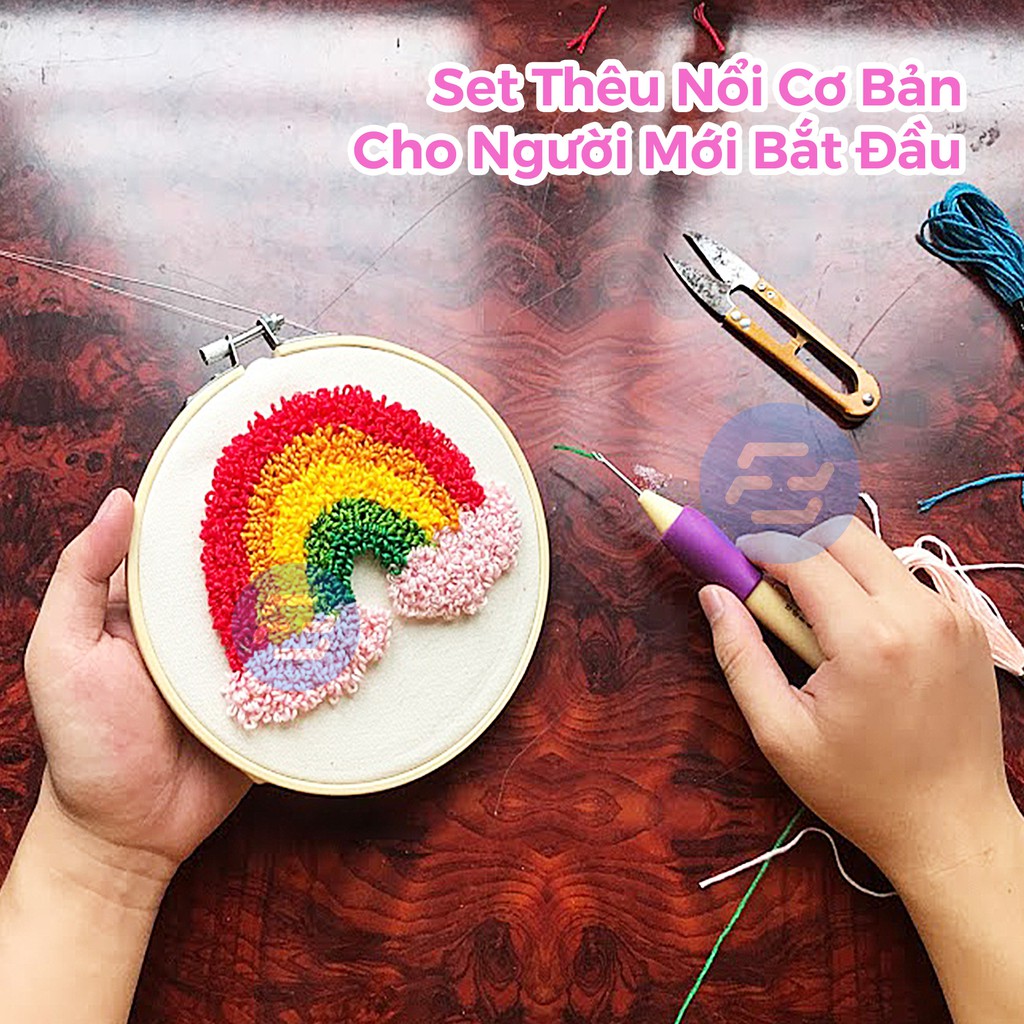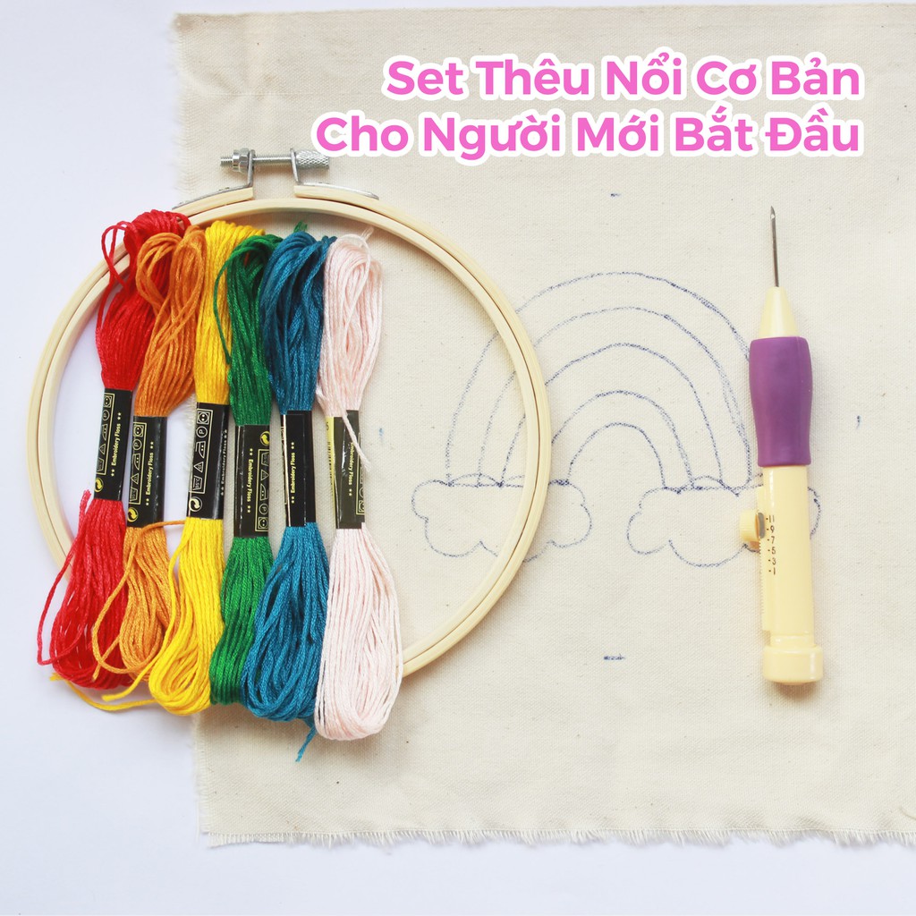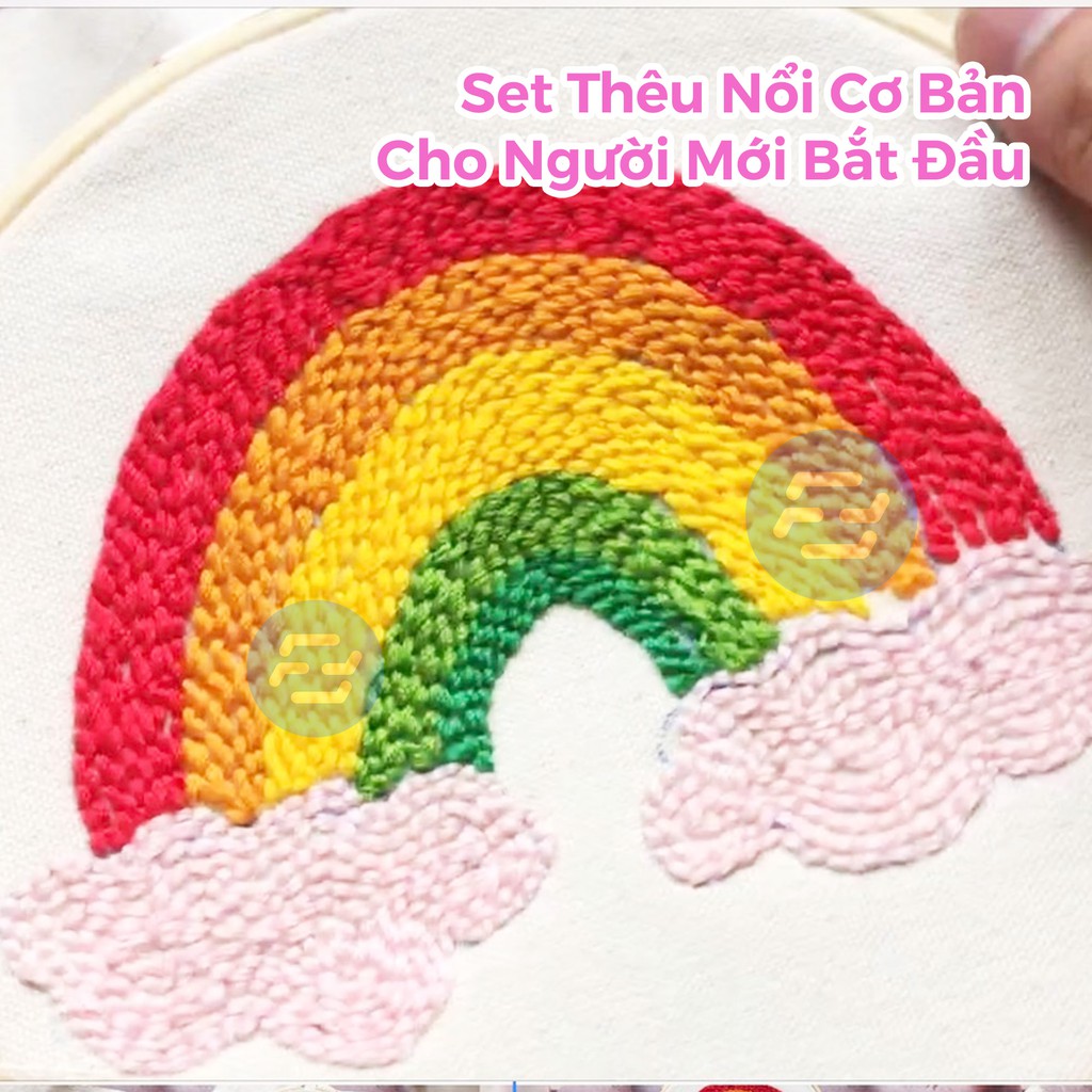 Kim Thêu Nổi Thêu Xù, Set Cầu Vồng Dùng Len Đan Móc và Chỉ Thêu Đầy Đủ Dụng Cụ Cho Người Mới Bắt Đầu đã có mặt đầu tiên và độc quyền từ shop. Với bộ kit thêu đầy đủ này, bạn chỉ cần dành thời gian 5 phút để học thêu và hoàn thành tác phẩm đầu tay chỉ sau 30 phút. Chỉ cần order, mở bưu kiện ra là bạn có thể bắt đầu được luôn.Bộ kit bao gồm tất cả dụng cụ mà bạn cần: