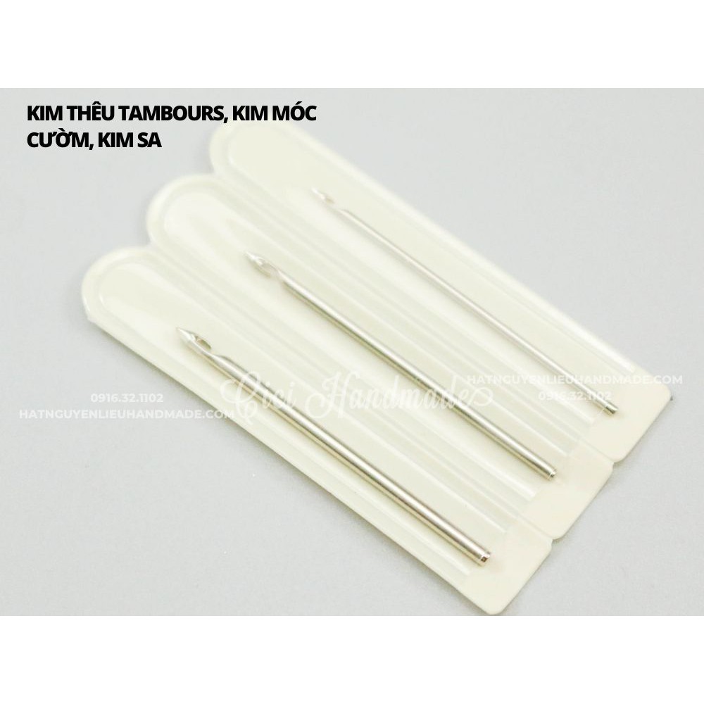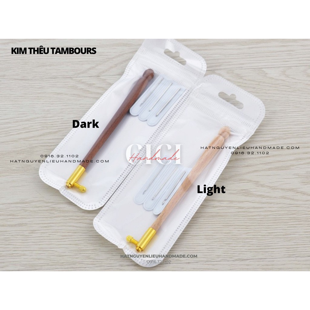 Kim thêu Tambour, tambours, kim móc cườm, kim sa tay cầm bằng gỗ (1 thân kim + 3 đầu kim) Cici Handmade nguyên liệu
