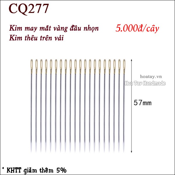 Sở thích & Sưu tầm > Dụng Cụ May Vá || Kim thêu tay mắt vàng đầu nhọn - Kim thêu trên vải, kim may len đầu nhọn CQ277Còn hàng