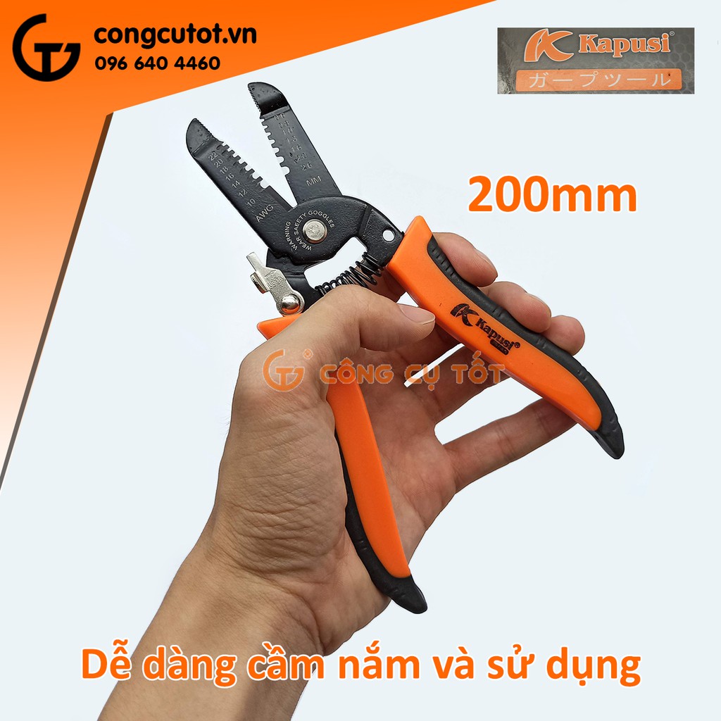 Kìm tuốt cắt tuốt vỏ dây điện lõi ø0.6 - 2.6mm 200mm Kapusi K-9100 có khóa an toàn bóp mở