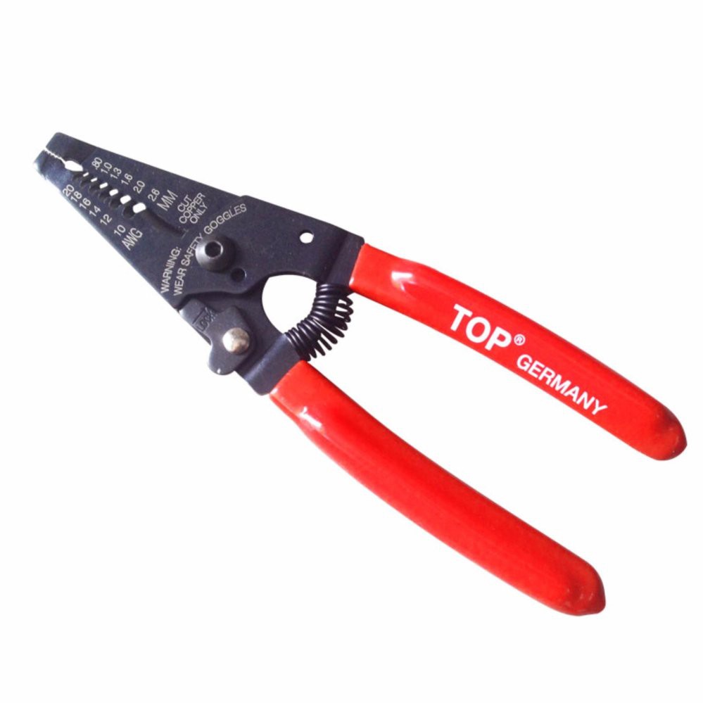 Kìm tuốt dây điện 6 inch thương hiệu TOP, được sản xuất tại Đài Loan và được chế tạo bằng thép cao cấp, giúp đảm bảo độ bền và độ chính xác cao.