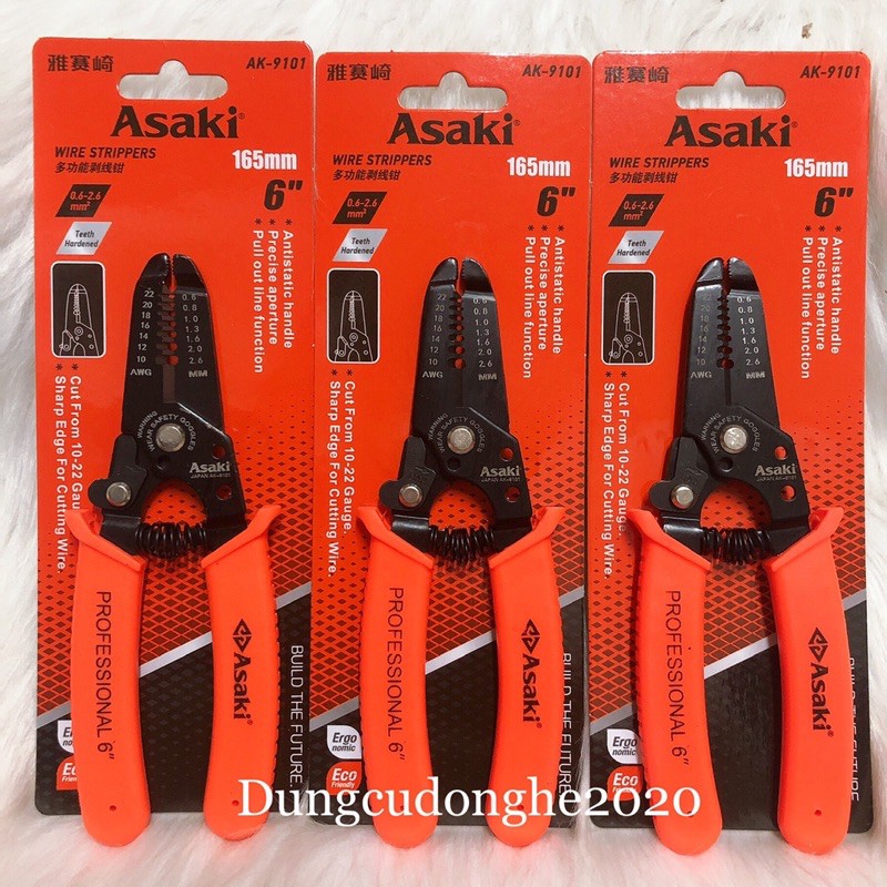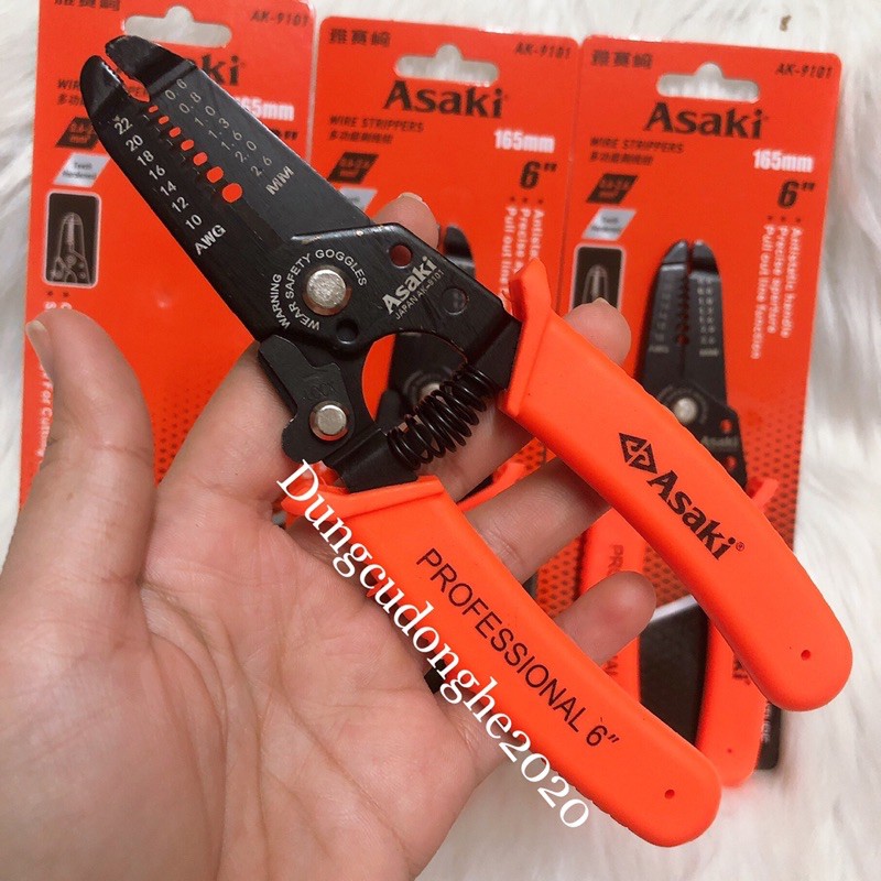 Kìm tuốt dây điện Asaki AK-9101 (có là xo) hay còn gọi là kìm tước dây điện , kềm tuốt dây điện là kìm tuốt dây điện cơ được sử dụng để tuốt các loại dây điện nhỏ có đường kính từ 0.6 - 0.8 - 1.0- 1.3- 1.6 - 2.0 - 2.6 mm.Kìm tuốt dây điện Asaki AK-9101 (có là xo) có kích thước 165mm tương đương 6" rất nhỏ gọn và dễ dàng thao tác.