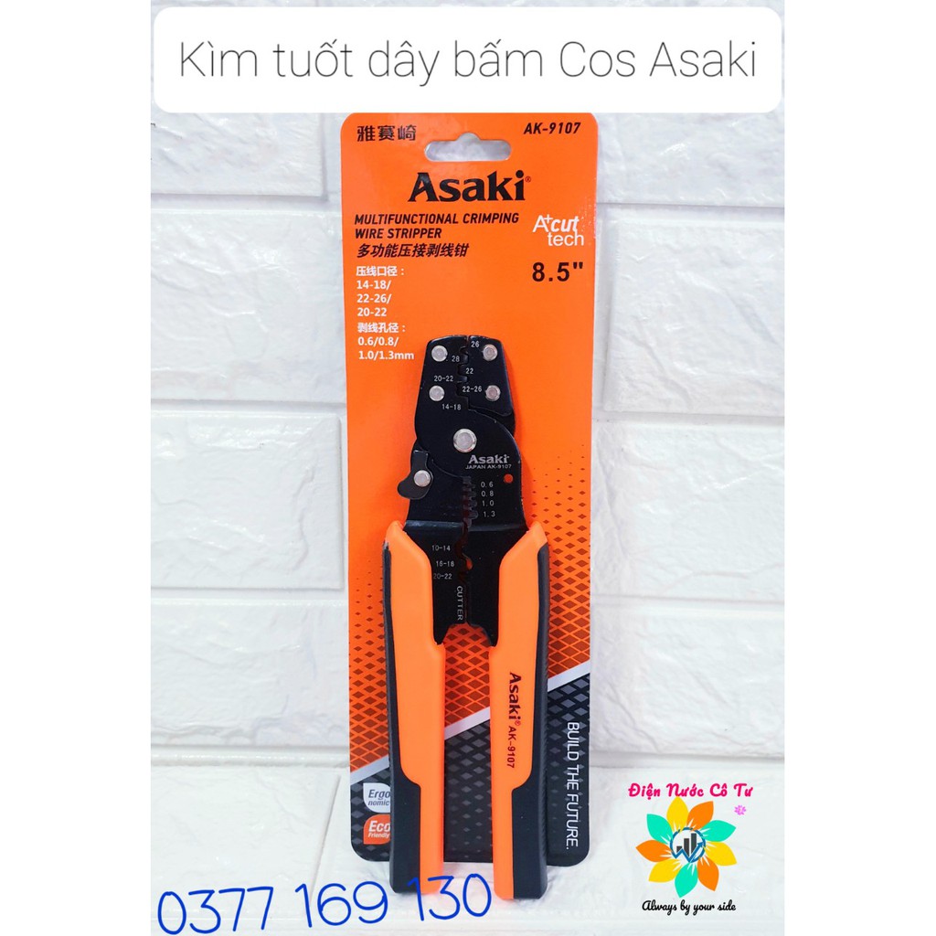 Kìm tuốt dây điện bấm COS đa năng Asaki AK - 9107