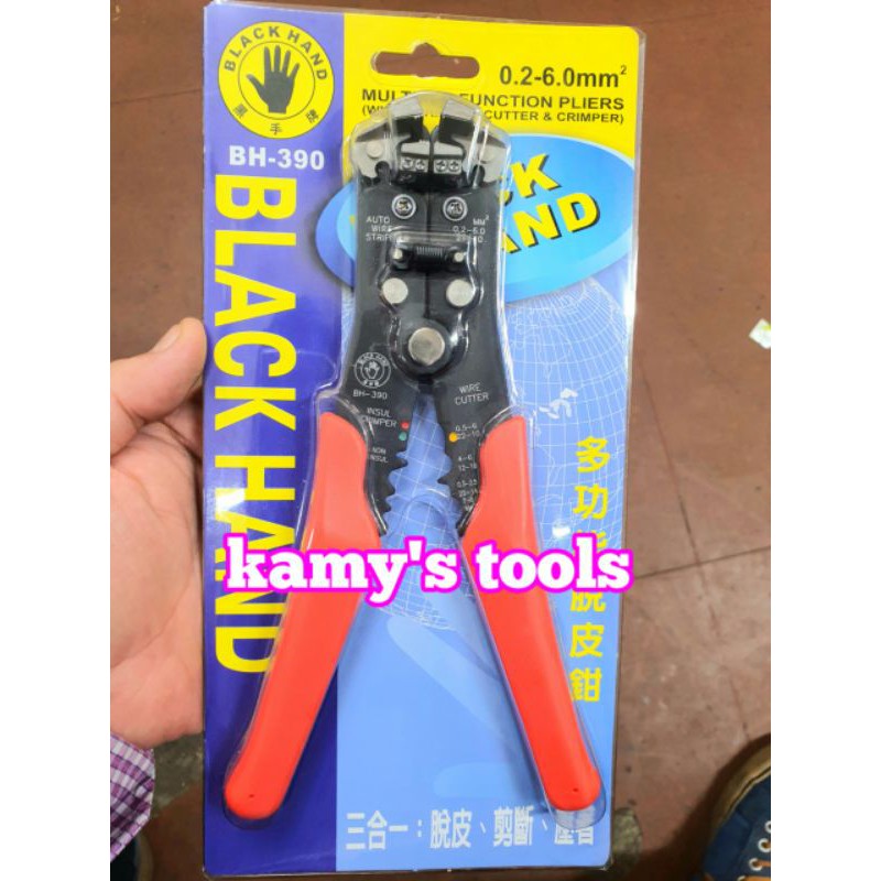 Kìm tuốt dây điện bấm cos đa năng black hand BH-390 với thương hiệu BLACK HAND nổi tiếng sản xuất chính hãng tại đài loan với model BH-390.Kìm tuốt dây điên đa năng black hand BH-390 có thể tuốt dây điện dây cáp tự động có đường kính từ 0.2-6mm2 tương đương 24-10AWG.