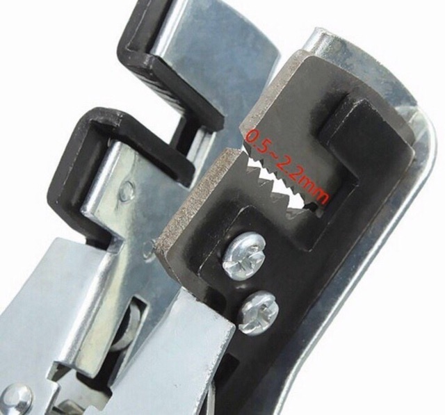 Đầu kẹp có nhiều rãnh, có thể tuốt được nhiều loại dây điện kích thước khác nhau (0.5-2.2mm).