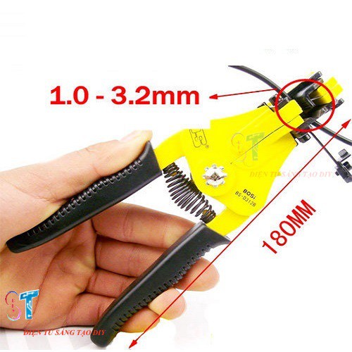 Bạn muốn bóc vỏ dây điện để nối 2 dây điện lại với nhau, nối dây điện với ổ điện, phích cắm... mà cứ bị đứt dây, sứt lõi dây điện... Hãy sắm cho mình ngay 1 chiếc kìm tuốt dây điện tự động để làm những việc trên 1 cách dễ dàng và hiệu quả.Kìm tuốt dây điện đa năng là dụng cụ không thể thiếu trong ngành điện tử. Để đáp ứng nhu cầu sử dụng của người dùng, kìm tước dây điện Bosi có thể tuốt được dây điện nhiều kích thước khác nhau: 1.0 mm, 1.6mm, 2.0mm, 2.6mm, 3.2mm.