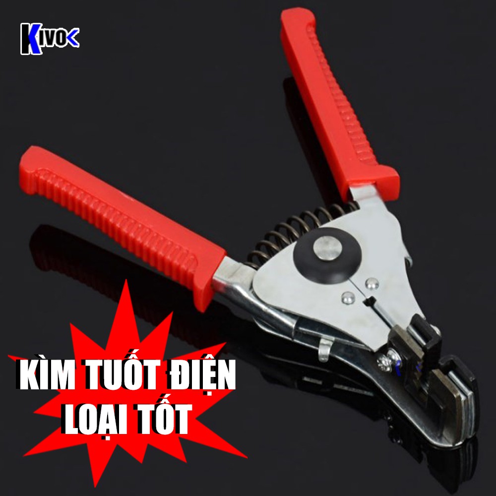 Kìm tuốt dây điện, dây cáp,.. đa năng - nội địa Trung Quốc Loại Tốt.Chỉ việc đưa dây điện vào họng kìm tương ứng với kích thước tiết diện của lõi dây điện, và bấm. Phần vỏ nhựa của dây sẽ đứt hết và tự động bị kéo ra, lõi dây không bị ảnh đứt.