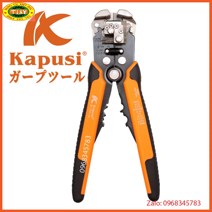 Kìm tuốt dây điện, dây cáp, bấm cos đa năng 0.2 - 6mm KAPUSI JAPAN