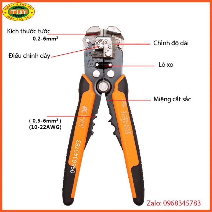 Kìm tuốt dây điện, dây cáp, bấm cos đa năng 0.2 - 6mm:Công Cụ kìm tuốt dây điện Đa Năng Giúp Cho Việc Sửa Chữa Nhanh Chóng Thuận Tiện