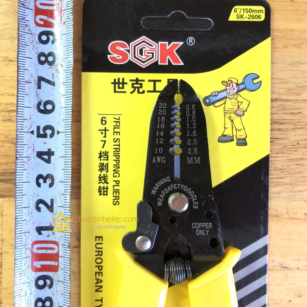 Kìm tuốt dây điện, phù hợp nhiều tiết diện lõi dây, có khóa an toàn khi sử dụng