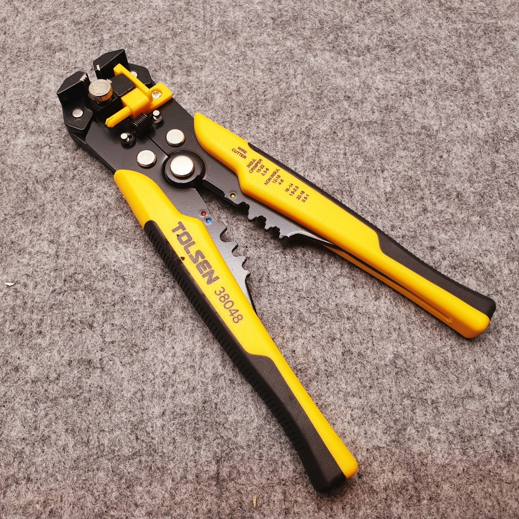 Nhà cửa & Đời sống > Dụng cụ & Thiết bị tiện ích > Dụng cụ > Kìm || Kìm tuốt dây điện tự động công nghiệp, bấm cos, cắt dây Tolsen, kìm đa năng 3 trong 1, hàm thép cao cấp Cr12MoV mã 38048Còn hàng