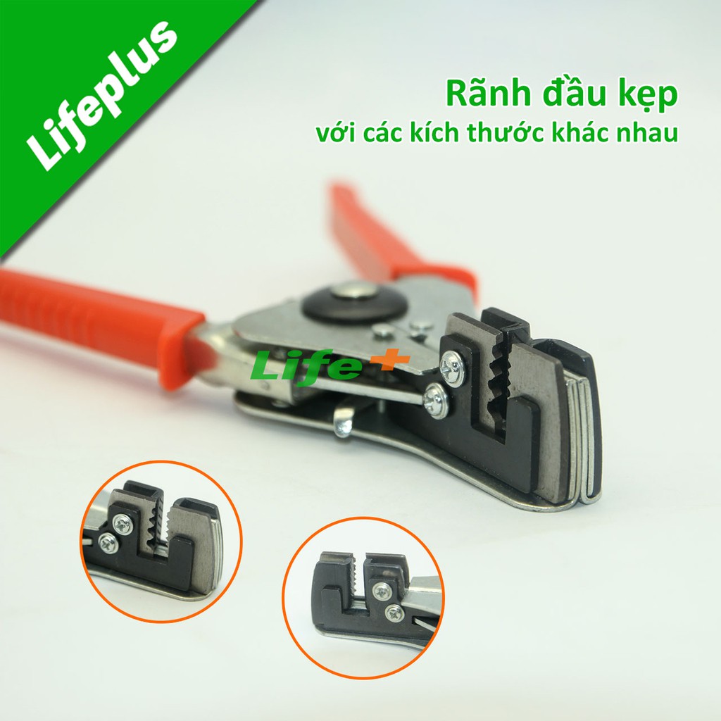 Đầu kẹp có nhiều rãnh, có thể tuốt được nhiều loại dây điện kích thước khác nhau (0.5-2.2mm).