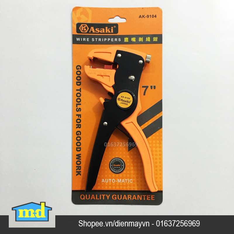 - Kiềm tước dây Asaki AK-9104 là sản phẩm chất lượng cao chuyên dùng để tuốt dây điện.. được sử dụng rộng rãi trong việc sửa chữa, điện,...các thiết bị gia đình hay công nghiệp, giúp bạn hoàn thành công việc 1 cách nhanh chóng và hiệu quả hơn.
