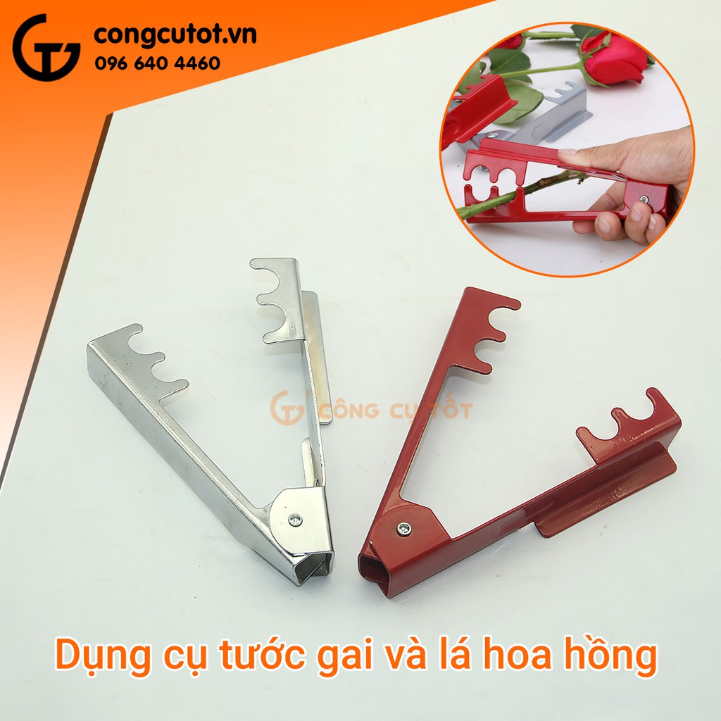 Kìm tuốt gai và lá hoa hồng hợp kim màu đỏ có độ bền cao, bề mặt sáng bóng, cứng cáp. Sản phẩm phẩm có công dụng tuốt lá và gai hoa hồng mà không gây tổn thương tới đôi bàn tay hay làm hư hại tới cành hoa. Đây là dụng cụ cầm tay phù hợp với những nhà trồng hoa, người cắm hoa chuyên nghiệp và những chị em phụ nữ đảm đang.Làm từ thép hợp kim có độ bền cao, cứng cáp, dễ dàng lau chùi, vệ sinh sau khi sử dụng