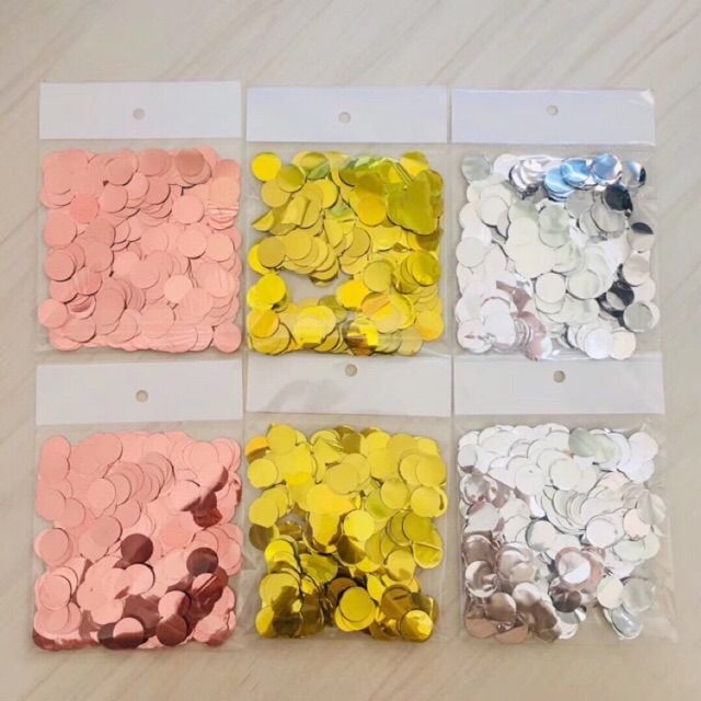 Sang chảnh hơn giấy confetti thông thường, loại giấy thả bóng ép kim mang màu sắc siêu lung linh nha khach!- màu sắc óng ánh khỏi chê vào đâu được nha!