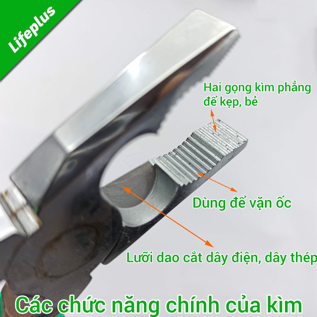 Kìm vạn năng mũi bằng 200mm bằng gói gọn các chức năng : cắt, tuốt dây, kẹp giữ, tháo ốc vít,... vào trong một sản phẩm, đơn giản, tiện dụng, là một dụng cụ không thể thiếu trong hộp đồ nghề của gia đình, của thợĐược chế tạo từ thép Cr-V cứng, không gỉ, chống va đập tốt