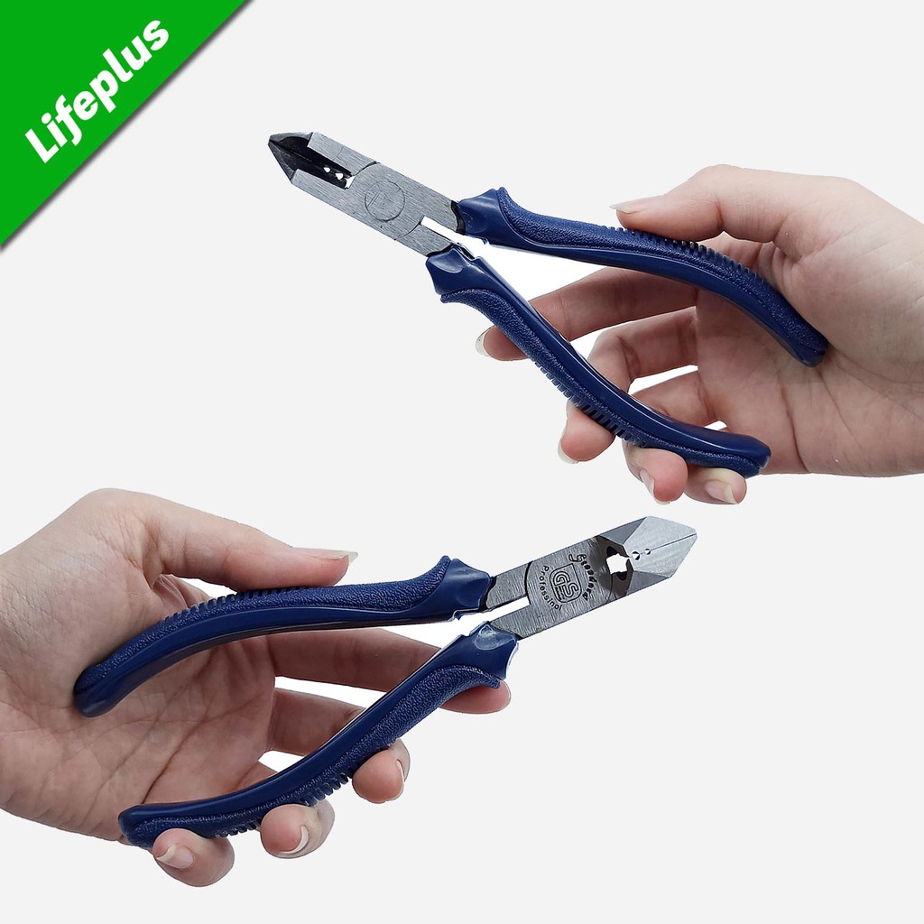 Mũi kìm vát nghiêng một góc 45°, bề mặt vát phẳng cho phép cắt tỉa sát chân các chi tiết, vật liệu.