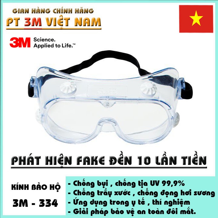 Kính bảo hộ 3M 334 chống hoá chất, tia bắn, vật bắn, bụi